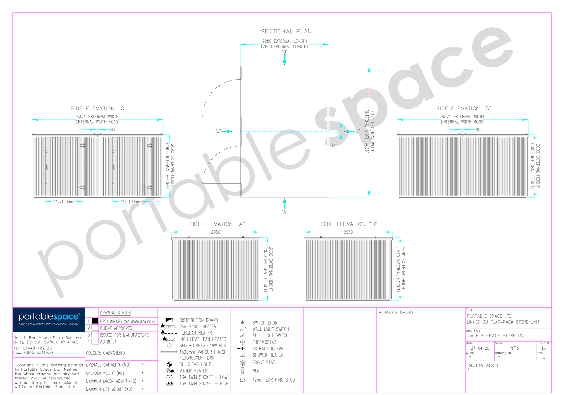 Optional upgrades include shelving, racking, electrics, lighting kits, insulation, and custom internal layouts.