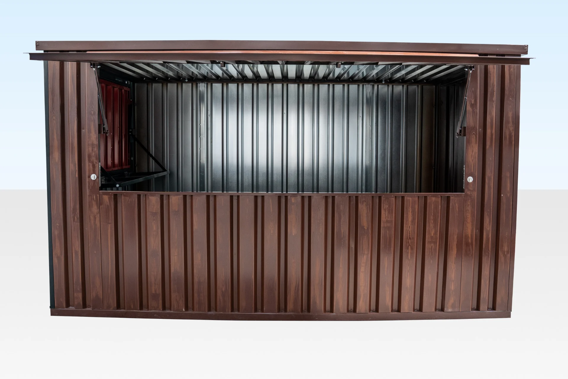 This 4m XL Flat Pack Kiosk with Wood Effect Finish provides a premium, aesthetic, and highly practical modular unit ideal for retail operations, events, schools, leisure venues, business parks, ticketing points, festivals, and commercial environments. The realistic wood-effect exterior offers a stylish, natural look while maintaining the long-term durability of reinforced steel construction.