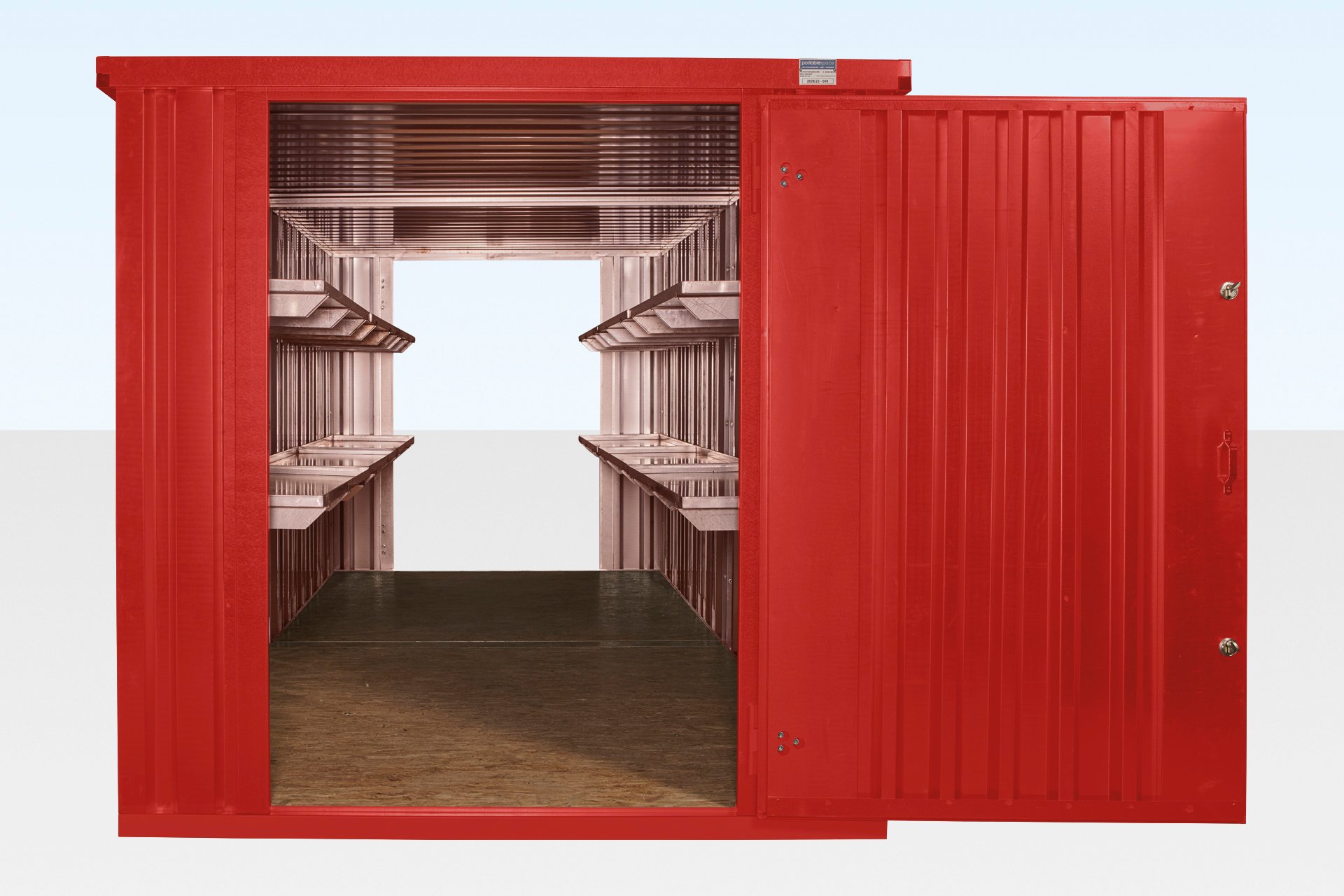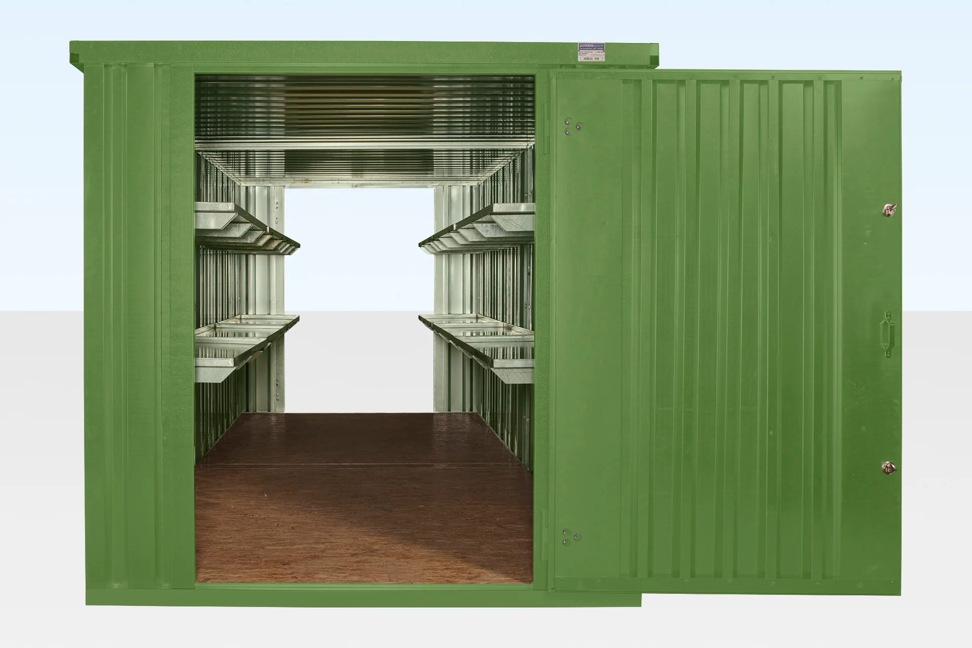 Constructed from galvanized steel with anti-tamper features, steel flooring, and a reinforced personnel door, this flat pack system provides dependable security and long-term durability. Optional upgrades include interior lining, electrics, shelving, racking, lighting, and full custom branding.