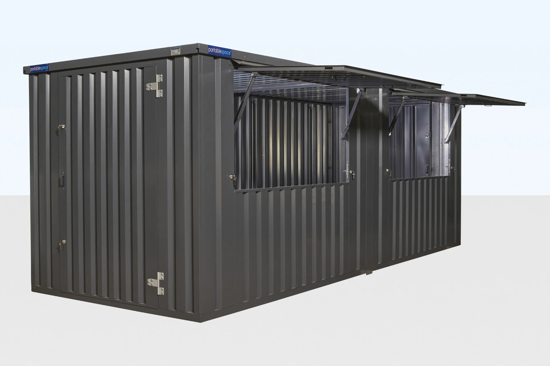 Constructed from heavy-duty galvanized steel with reinforced panels, steel flooring, a secure personnel door, and large kiosk service windows, this bundle is designed for both short-term deployment and long-term use. Optional upgrades include electrical packages, counters, shelving, racking, lighting, and custom branding.
