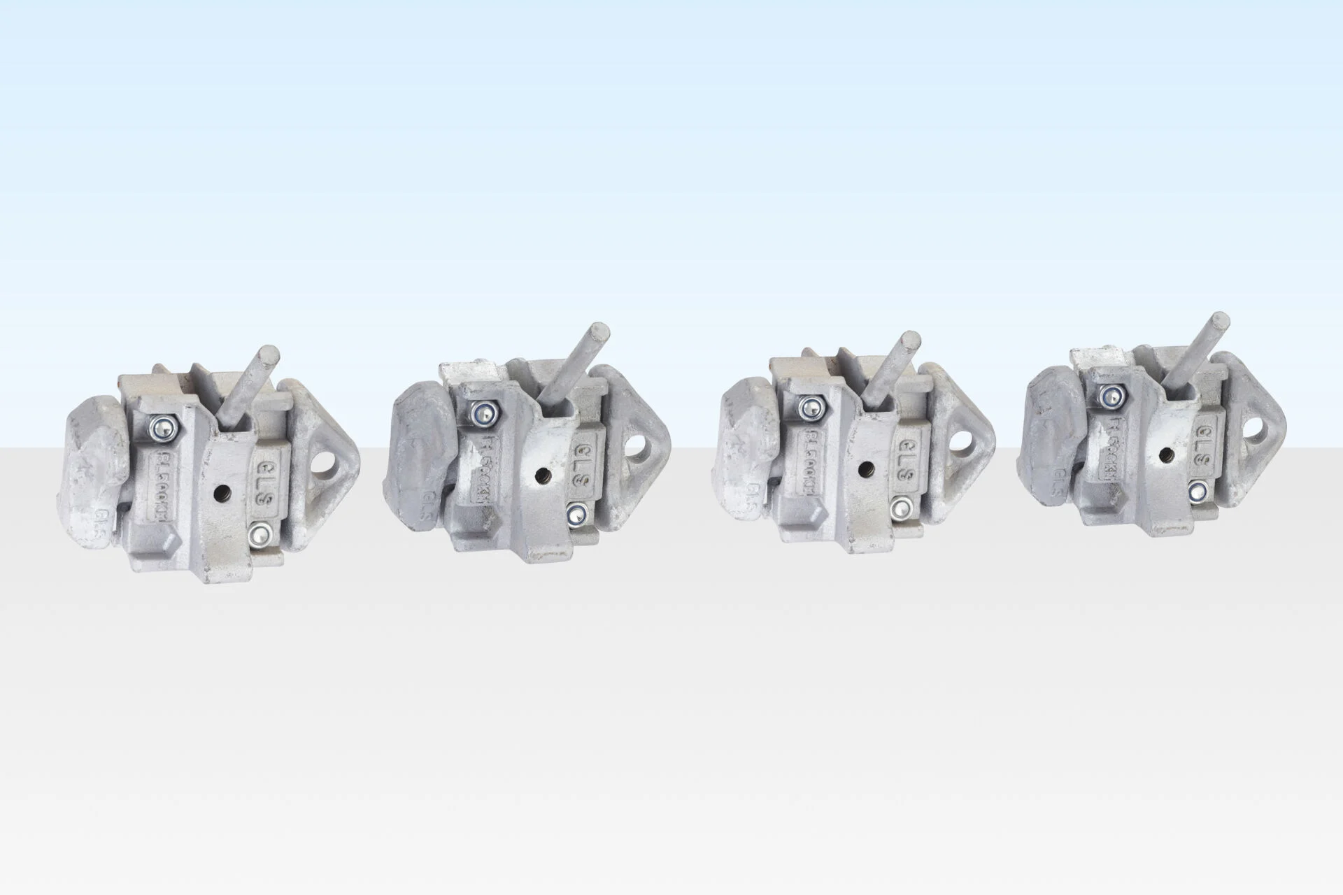 Heavy-duty twist locks for securing and stacking shipping containers. ISO-compatible locking system for safe transport and onsite installation.